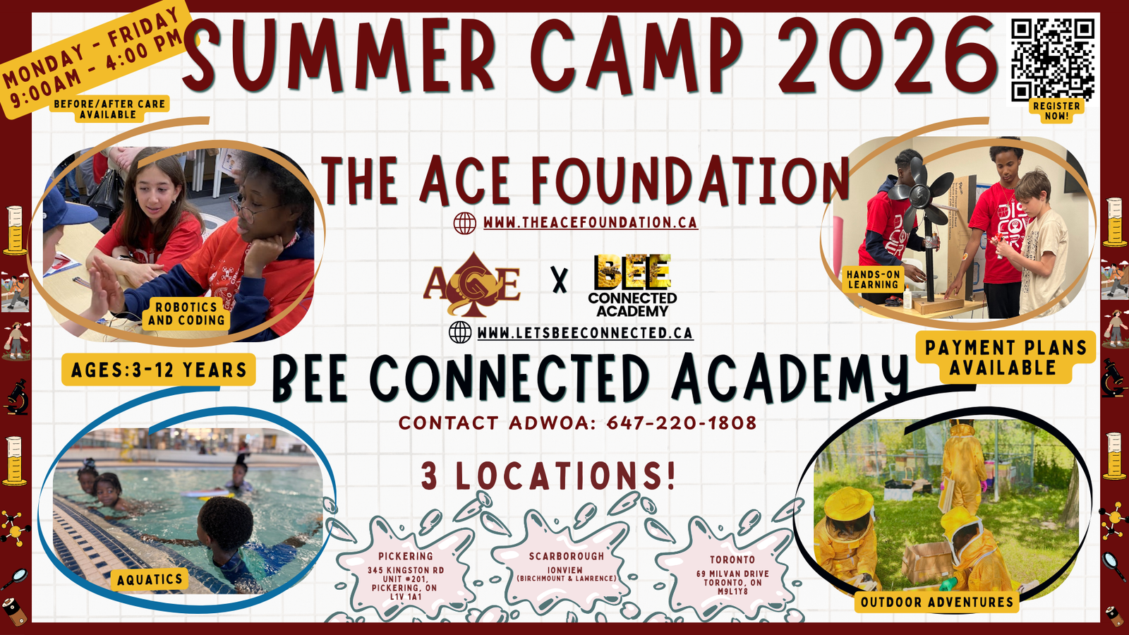 ACE Summer Camp 2026 blends robotics, coding and hands‑on science with swim time led by certified aquatics staff. Optional Outdoor Adventure with Bee Connected Academy includes apiary visits, hive management, hydroponics and aquaponics.
